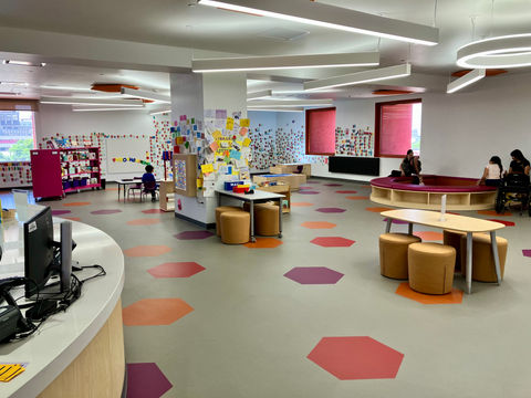 The area is bright and welcoming, and it tends to fill up after school hours, especially with students from nearby Fox Tech High School.